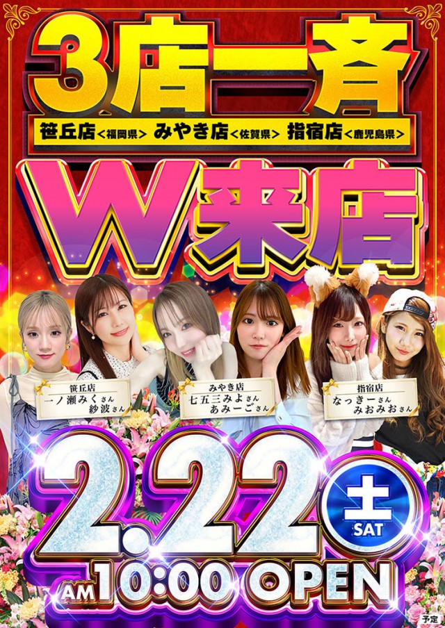 😊😊😊2月22日(土) 3店一斉W来店!! 😊😊😊