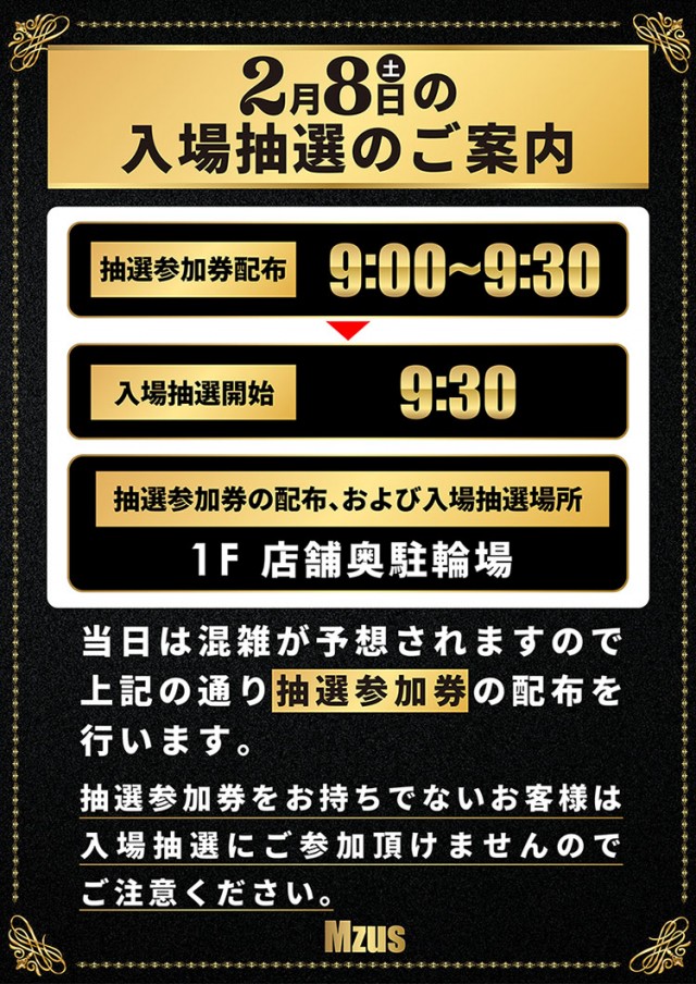 ■9:40抽選開始 ■新台入替当日など▶︎9:30抽選開始 |