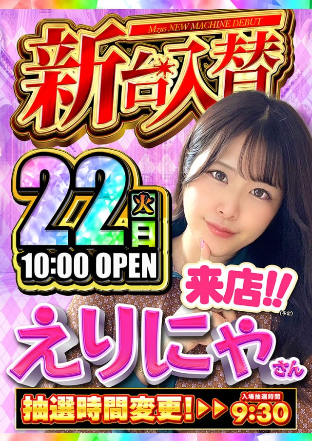 😊 22日 新台入替 & えりにゃさん来店 😍