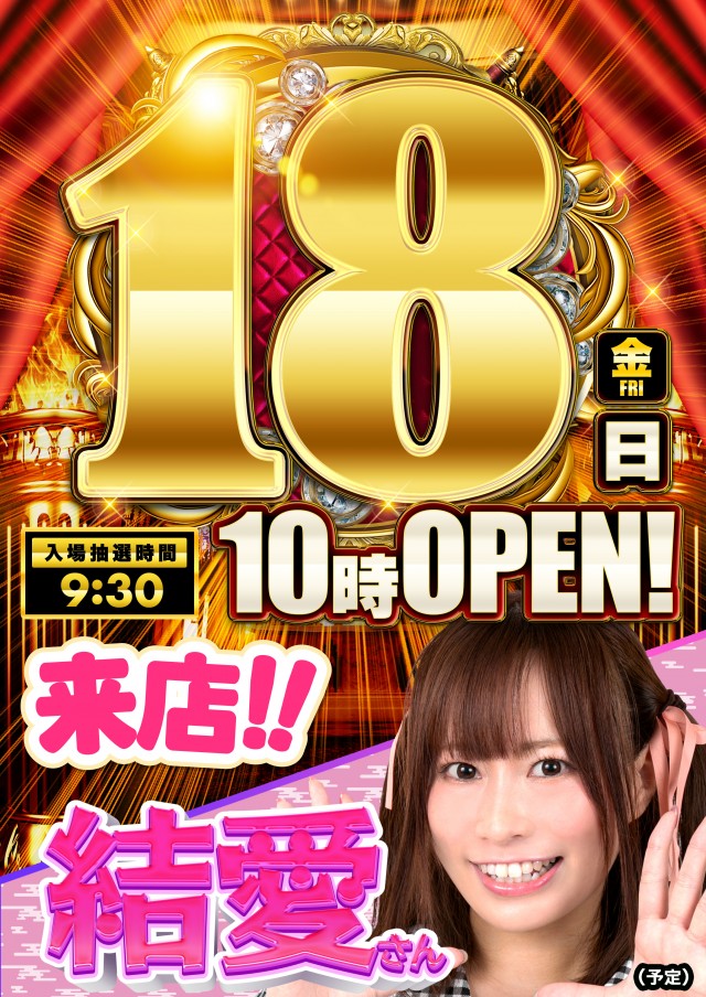 😊18日(金)結愛さん来店!入場抽選▶︎9:30開始!😍