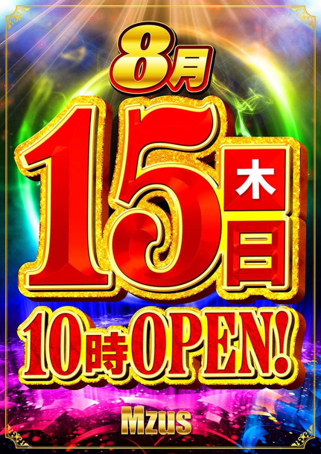 😄 8月15日 (木) 10時オープン! 😄