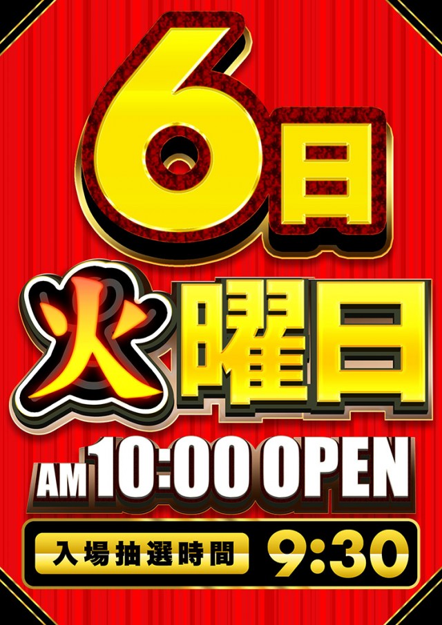 😄6日 火曜日 10時開店▶︎入場抽選は9時30分!😄
