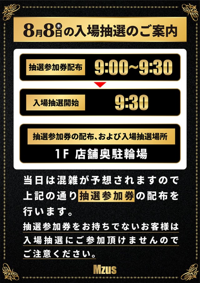 ■9:40抽選開始 ■新台入替当日など▶︎9:30抽選開始 |