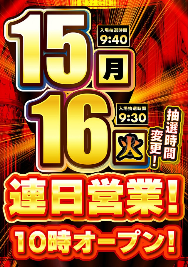 ■9:40抽選開始 ■新台入替当日など▶︎9:30抽選開始 |