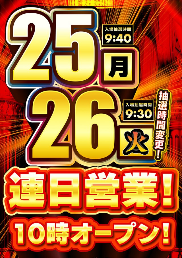 ■9:40抽選開始 ■新台入替当日など▶︎9:30抽選開始 |