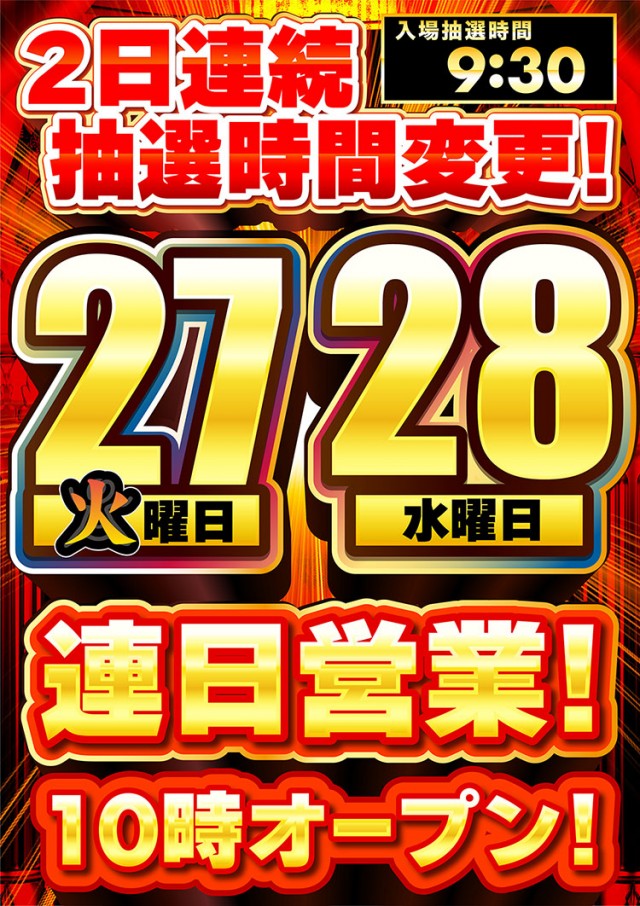 ■9:40抽選開始 ■新台入替当日など▶︎9:30抽選開始 |