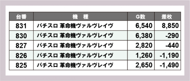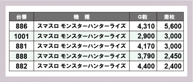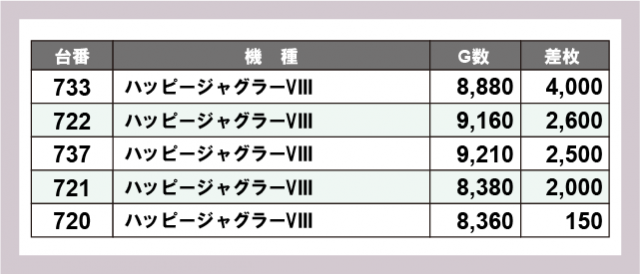 ※差枚数順に掲載しています