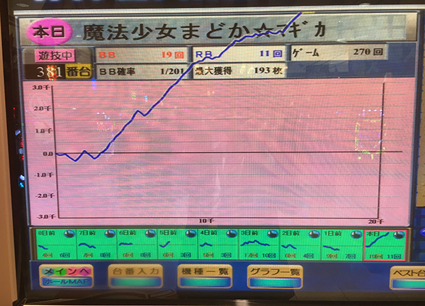 今回のアッパーは、381番台の【SLOT魔法少女まどか☆マギカ】にて目撃された…
