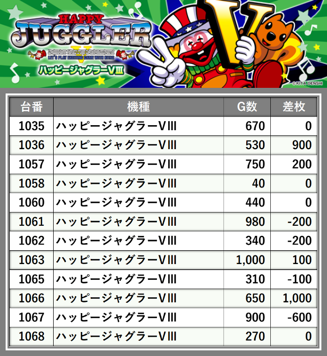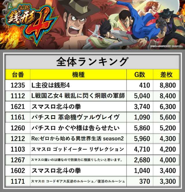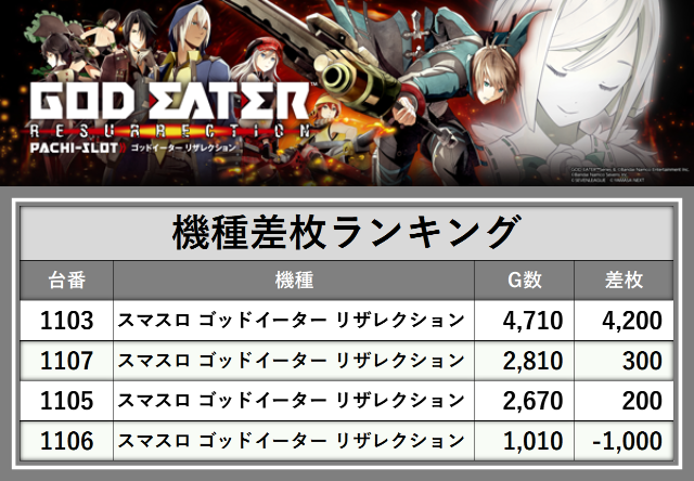 厳選された取材対象機種をはじめ、その他スロット全体から好記録が飛び出した!プレイヤーが楽しんだ1日を下記データにて振り返ってみて欲しい。