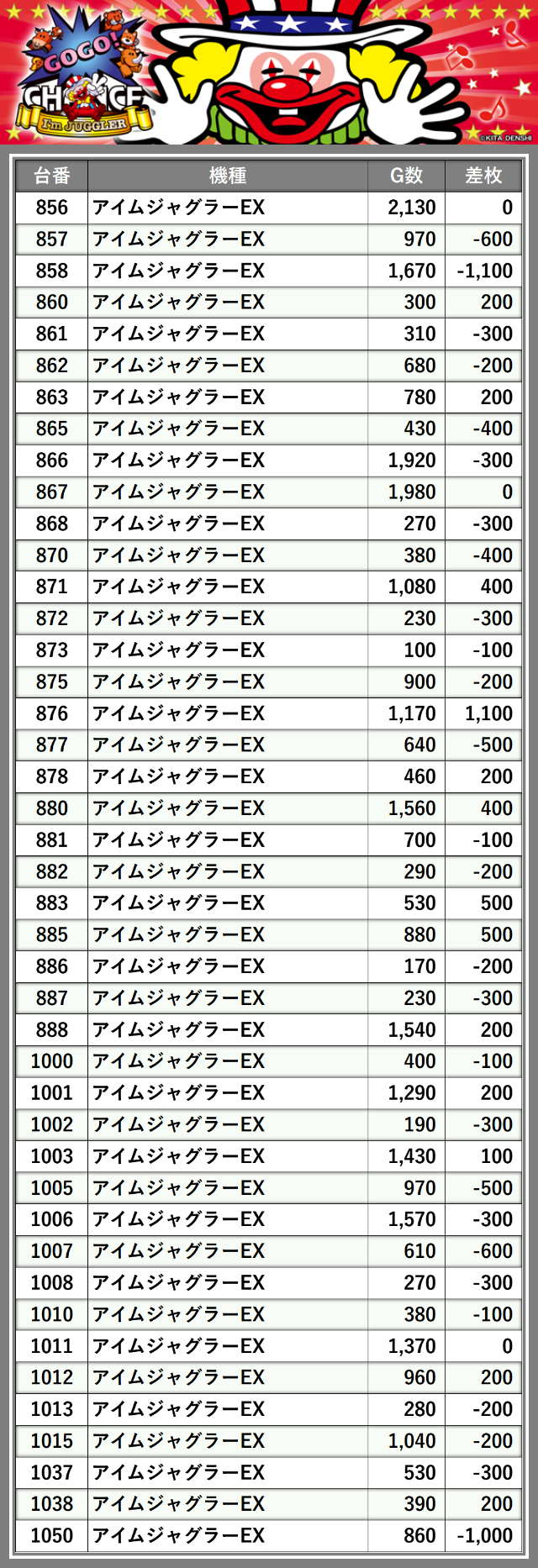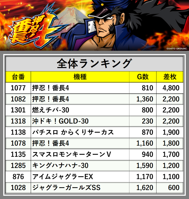 厳選された取材対象機種をはじめ、その他スロット全体から好記録が飛び出した!プレイヤーが楽しんだ1日を下記データにて振り返ってみて欲しい。