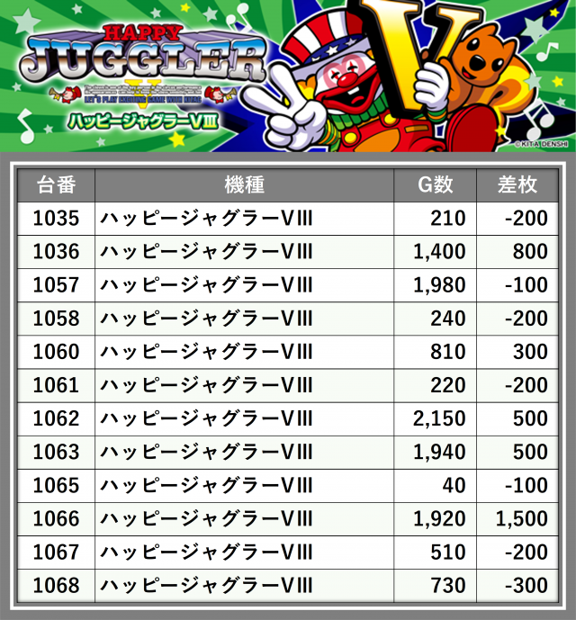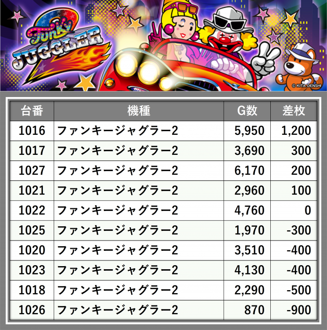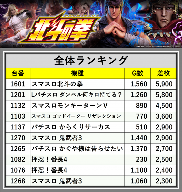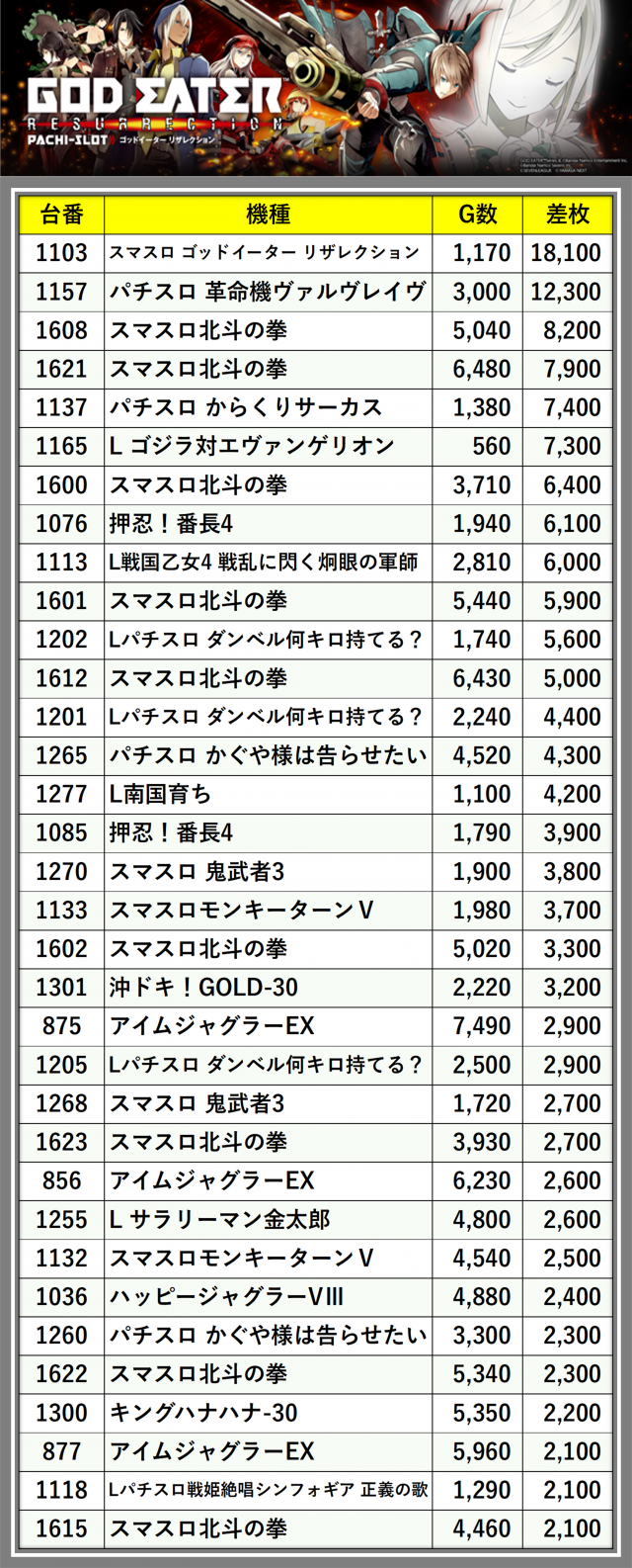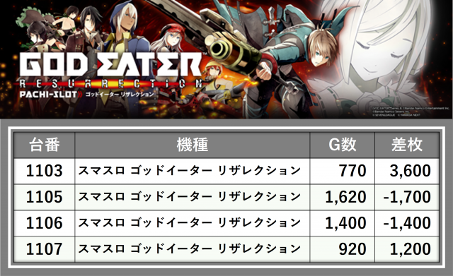 厳選された取材対象機種をはじめ、その他スロット全体から好記録が飛び出した!プレイヤーが楽しんだ1日を下記データにて振り返ってみて欲しい。