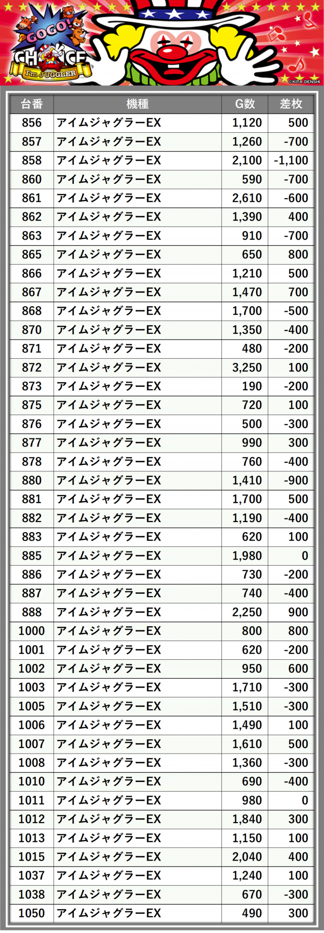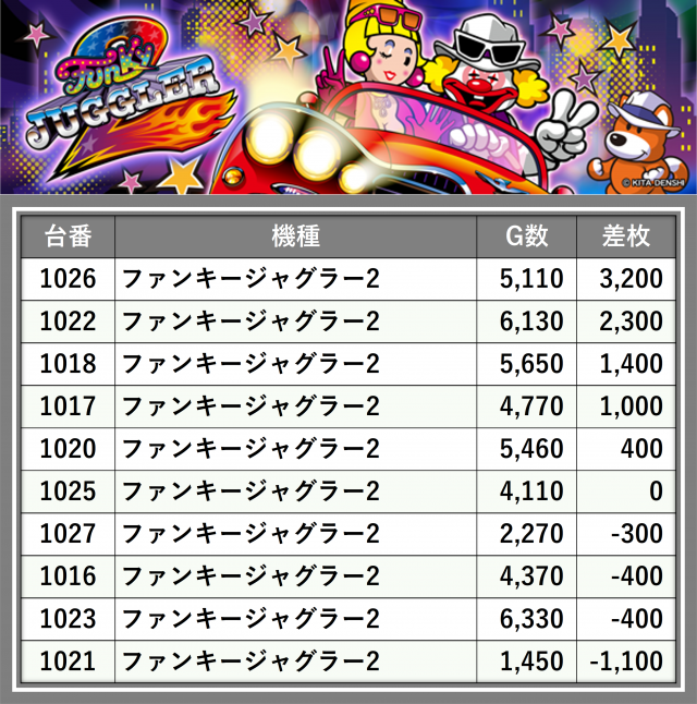 厳選された取材対象機種をはじめ、その他スロット全体から好記録が飛び出した!プレイヤーが楽しんだ1日を下記データにて振り返ってみて欲しい。