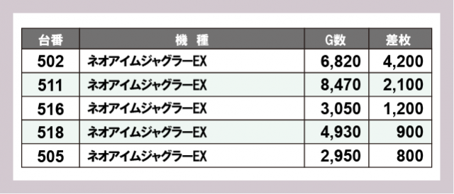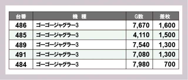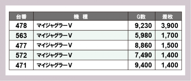 ※差枚数順に掲載しています