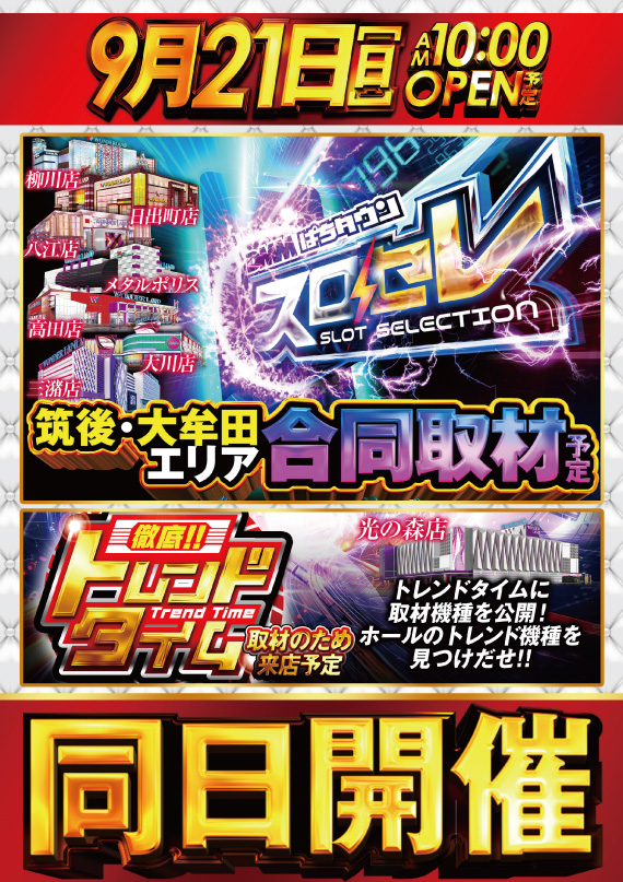 本日9月21日🌟🌟朝10時開店🌟🌟入場順番抽選9:40❗❗