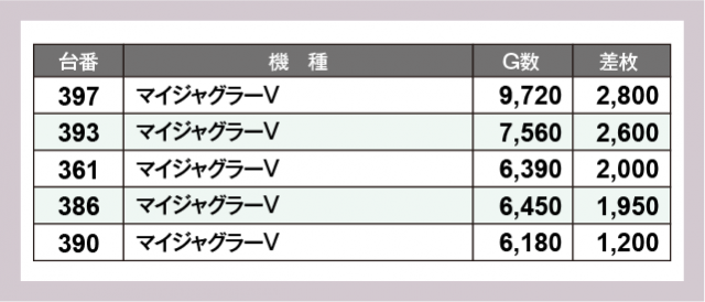 ※差枚数順に掲載しています