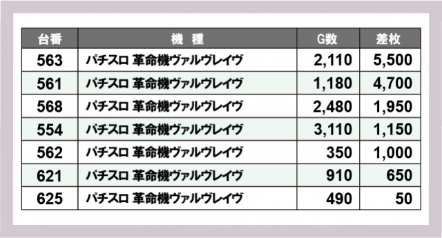 ※差枚数順に掲載しています