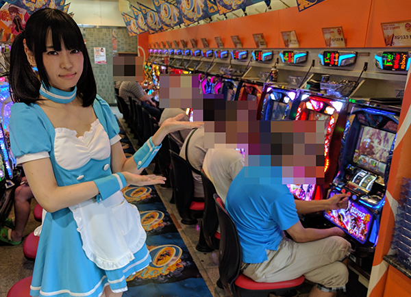 パチンコでは、かのんちゃんも実戦している「CRスーパー海物語IN沖縄4」が満席状態。