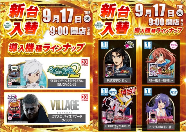 💥本日9/17新台入替予定💥最新台💥全10機種導入💥