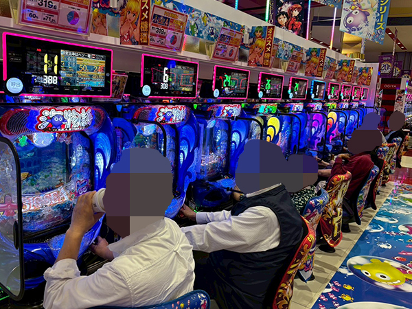 店内では貸し玉料金を問わず様々な機種で、心ゆくまで楽しむプレイヤーの姿が見られた。