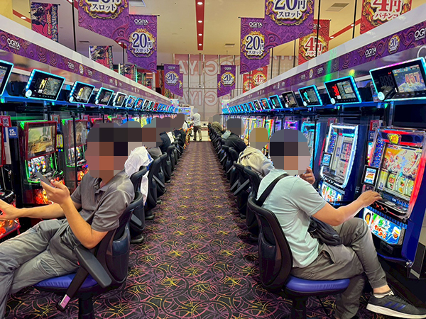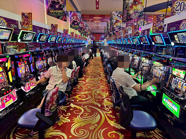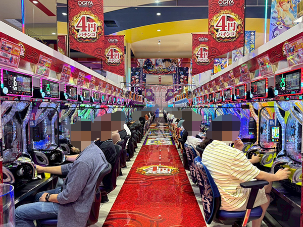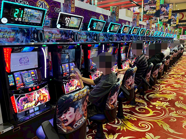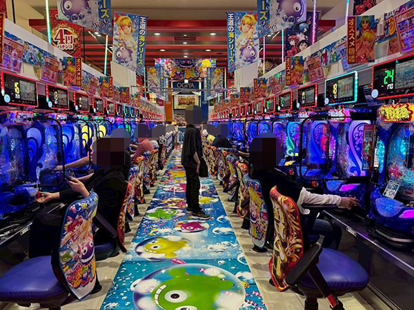 取材時は多くのプレイヤーが来店。パチンコ・パチスロともに、様々な機種が支持を得ていた。