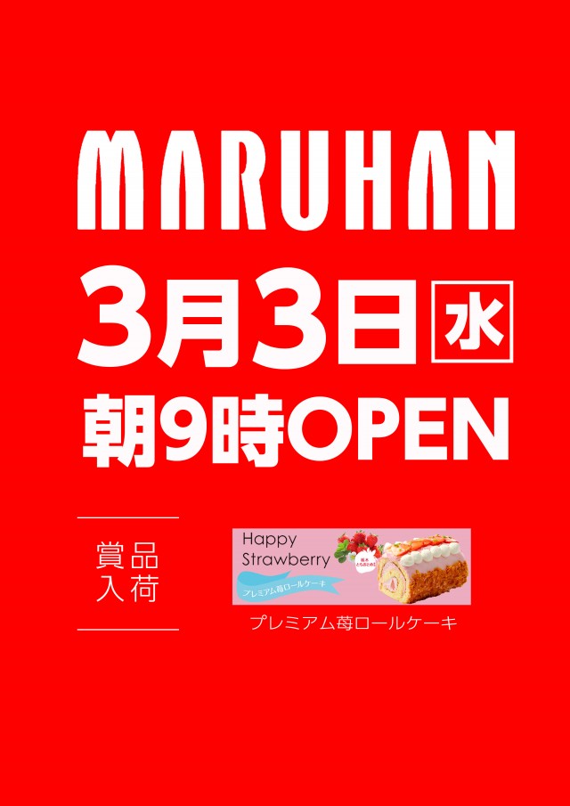 3月3日【水曜日】朝9時オープン!☆賞品入荷予定☆