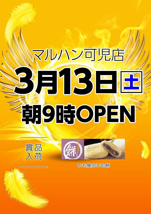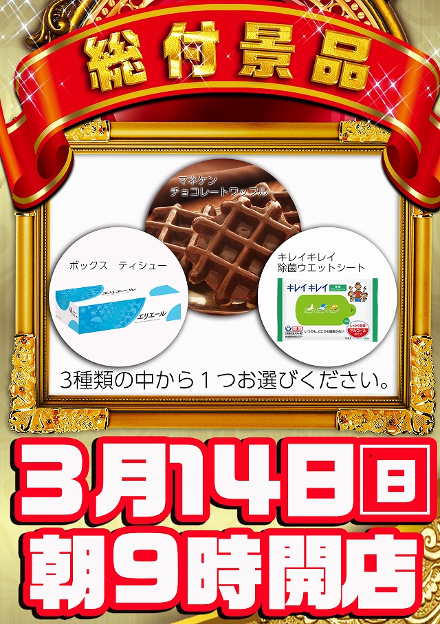 3月14日(日)朝9時オープン☆総付景品お配りします☆