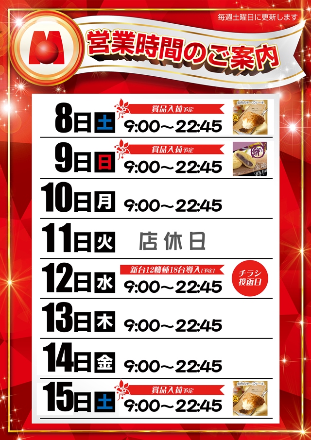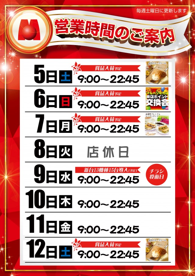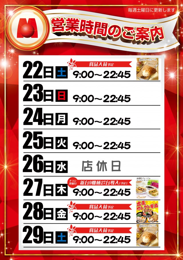 5月17日(月)賞品入荷予定 朝9時オープン!