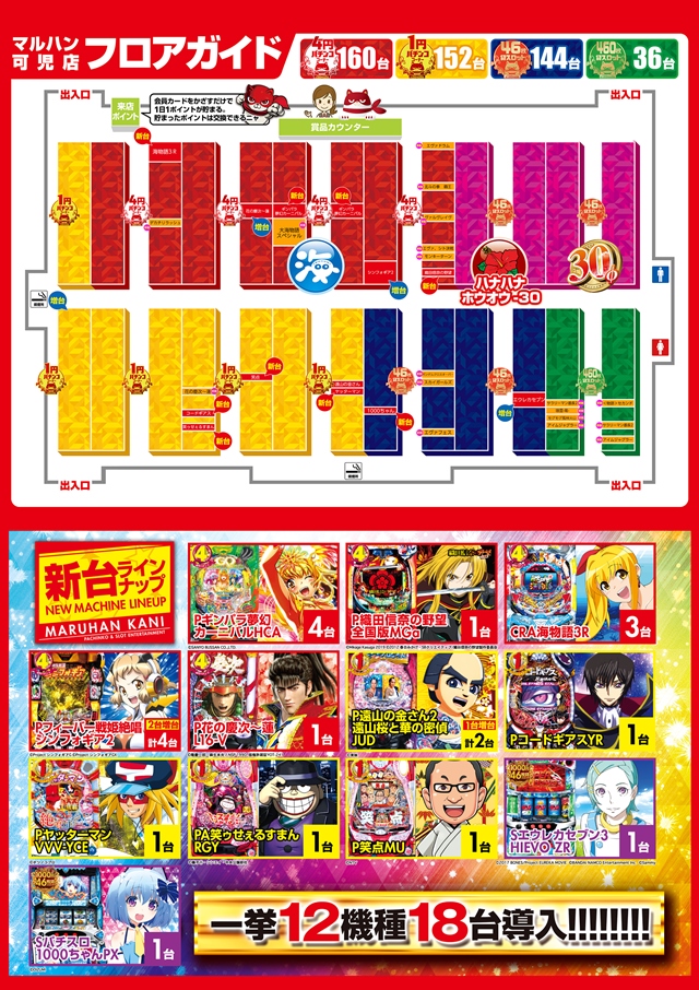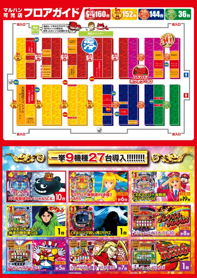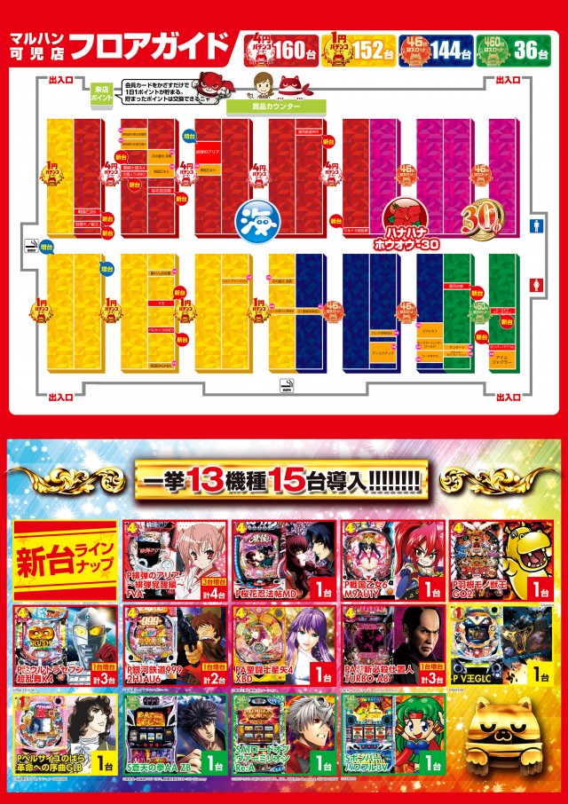 4パチ:120台 1パチ:152台 1円/5玉貸:40台 |