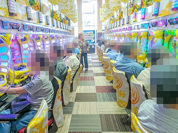 1円パチンコを見ると、「CRAスーパー海物語IN沖縄4withアイマリン」をはじめとする海物語シリーズが盛況。多くのプレイヤーが嬉しそうな表情を浮かべていた。