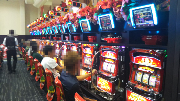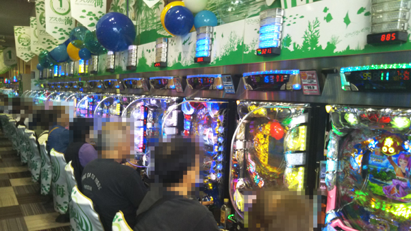 人気の中心は「CRAスーパー海物語 IN JAPAN with 桃太郎電鉄」をはじめとした遊パチの海物語シリーズで、空台はほとんど見られず、シマ全体が活気づいていた。