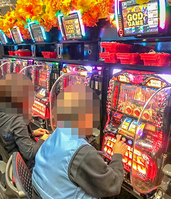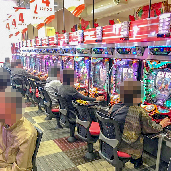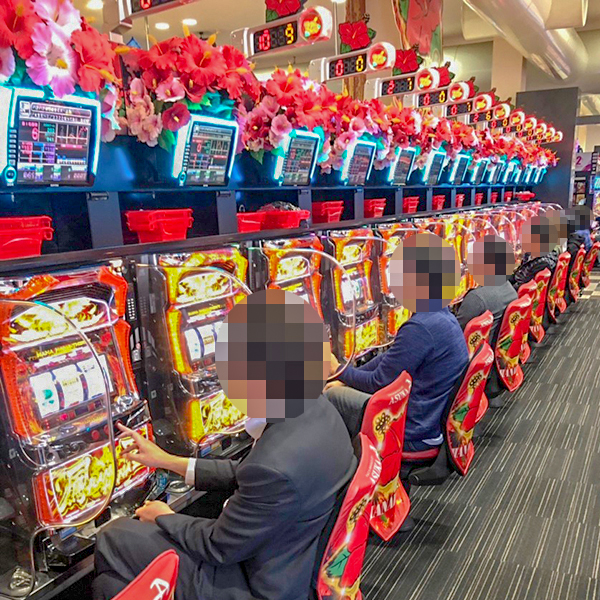取材時の店内には多くのプレイヤーが来店。パチンコ・パチスロともに、様々な機種が支持を集めていた。