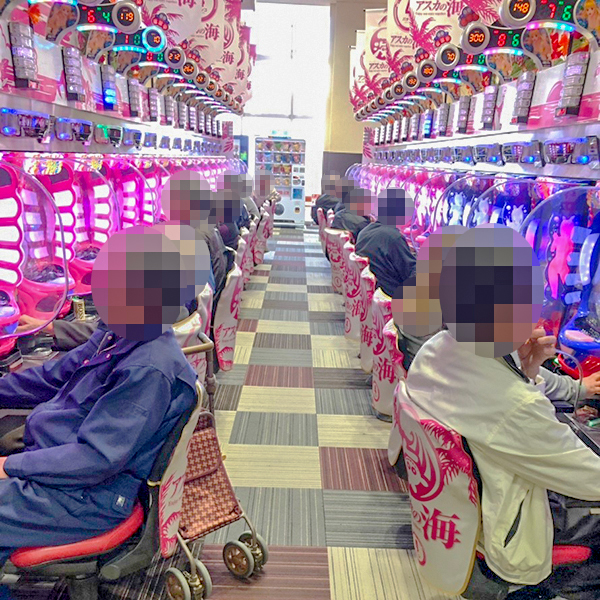 「CR大海物語4」や「CRスーパー海物語IN沖縄4」などの海物語シリーズの盛り上がりも大きい。シマ全体に微笑ましい光景が広がっていた。