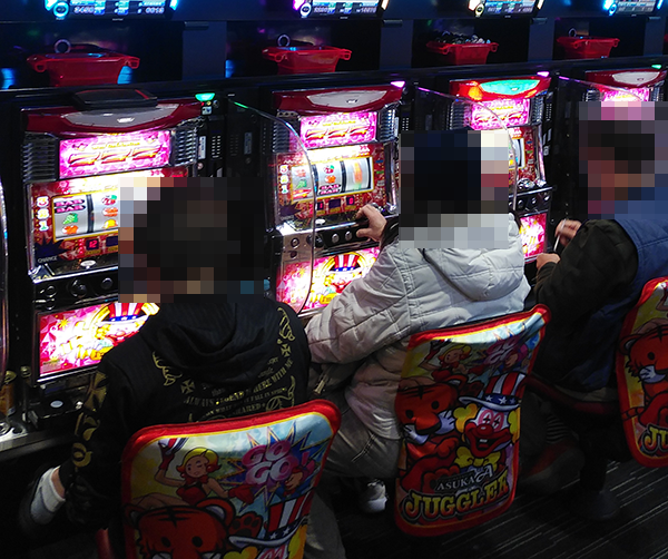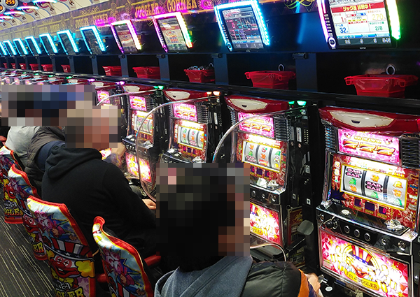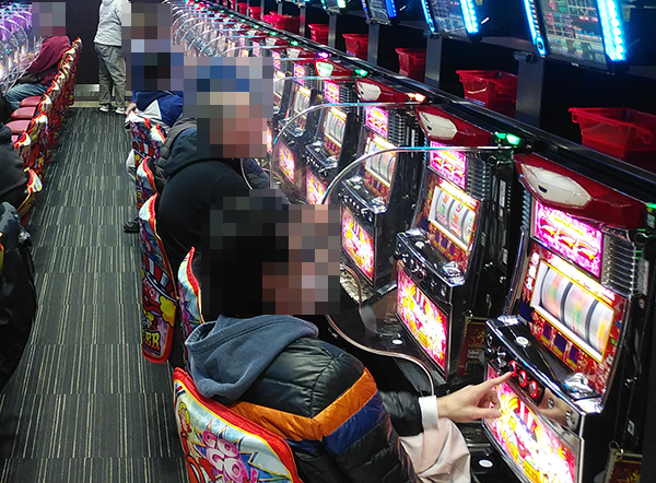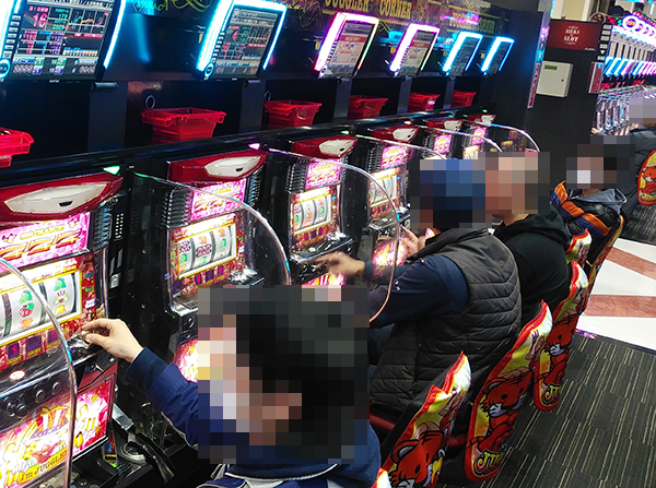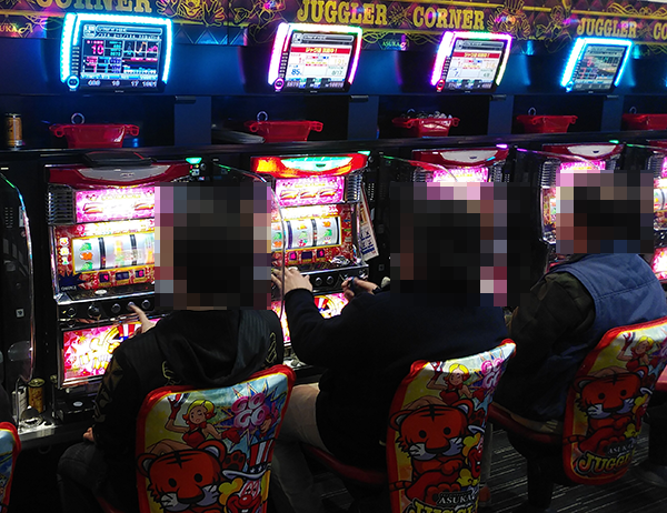 データカウンターのうえに造花が飾られているなどといった華やかな雰囲気のホール内を歩いていると、50台以上が設置されているジャグラーシリーズにおいて、イキイキとレバーを叩いているプレイヤーが目に映った。