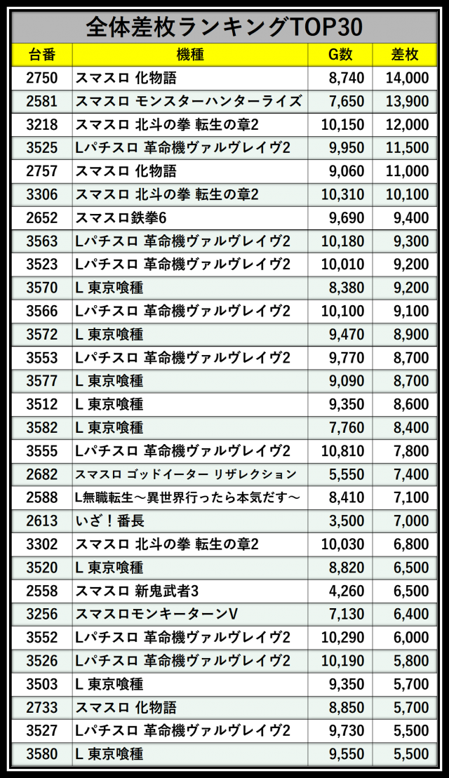 その結果の中から、ぱちタウンが注目すべきポイントを厳選してユーザーにお届け!プレイヤーが楽しんだ一日を下記データにて振り返ってみて欲しい。
