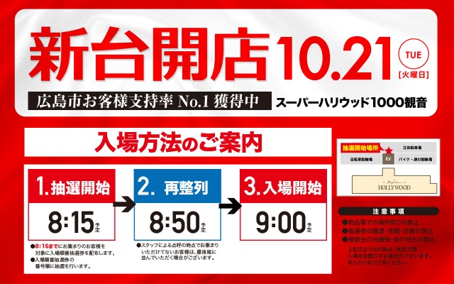 🎉明日21日は観ハリの新台開店初日! 全館AM9時OPEN♬
