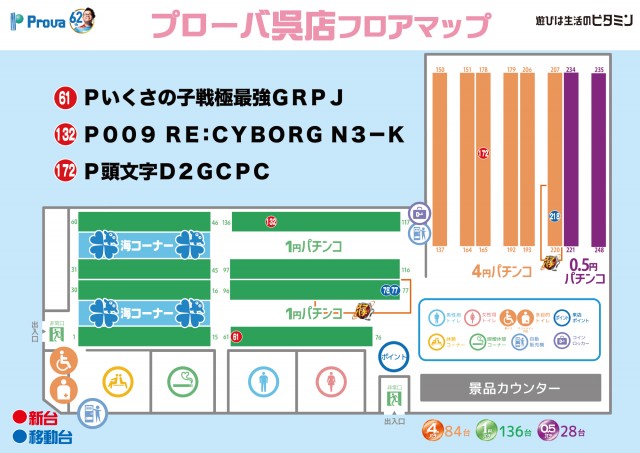 4パチ:84台 1パチ:136台 0.5パチ:28台 |