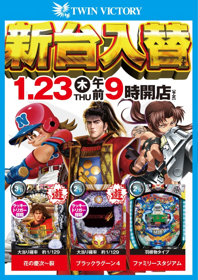 !!ツインビクトリーから新台入替ご案内!!
