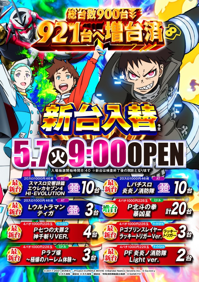 5月7日 新台入替 あさ9時開店!