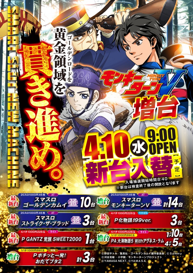 4月10日 ゴールデンカムイ導入!モンキーターン増台!