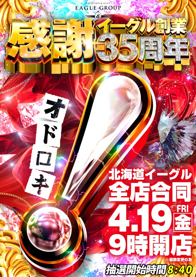 4月19日 北海道イーグル全店合同あさ9時開店!