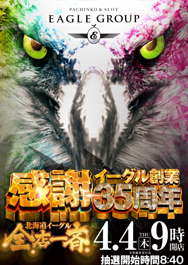 4月4日北海道イーグル全店一斉!あさ9時開店!