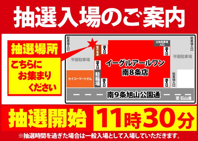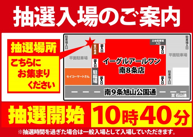 7月1日北海道イーグル全店合同朝9時開店!抽選開始8:40!