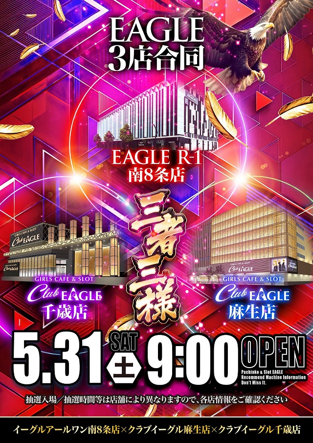 5月19日北海道イーグル全店合同あさ9時開店!抽選8時40分