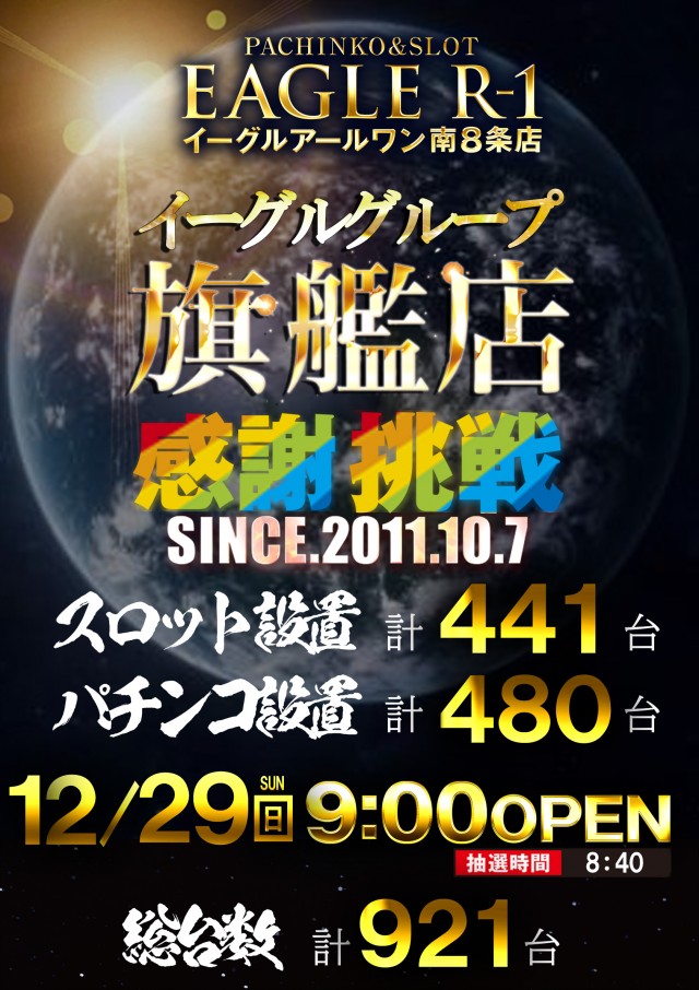 12月29日北海道イーグル全店合同あさ9時開店!