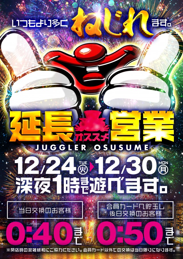 12月6日 スロットコーナー一部時差開放!13時&19時!