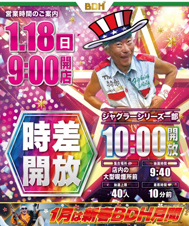 1月18日 一部時差解放 9時OPEN!!