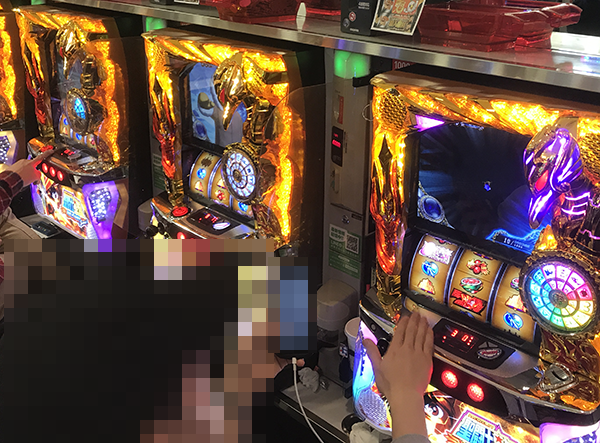 4台が横並びで設置されており、フル稼働。全台にイキイキとレバーを叩いている姿があったことからは、プレイヤーひとりひとりが遊技を満喫できていることが伝わってきた。