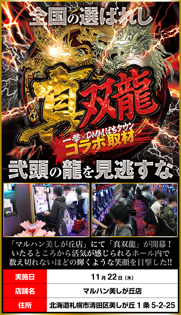 「マルハン美しが丘店」にて「真双龍」を敢行。