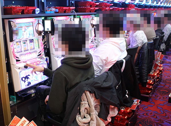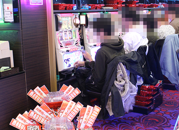パチスロコーナーをのぞいてみると、AT・ART機からボーナスタイプまで、さまざまな機種でプレイヤーが活躍していた。