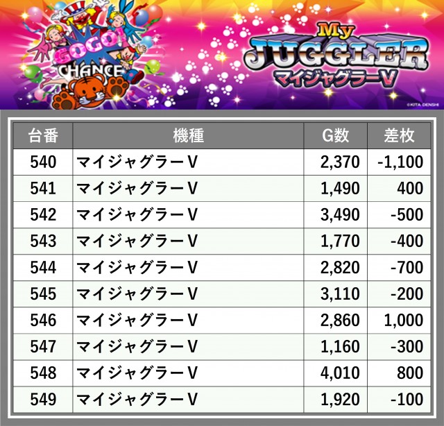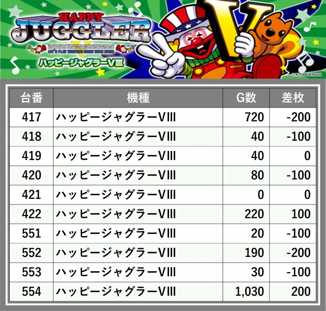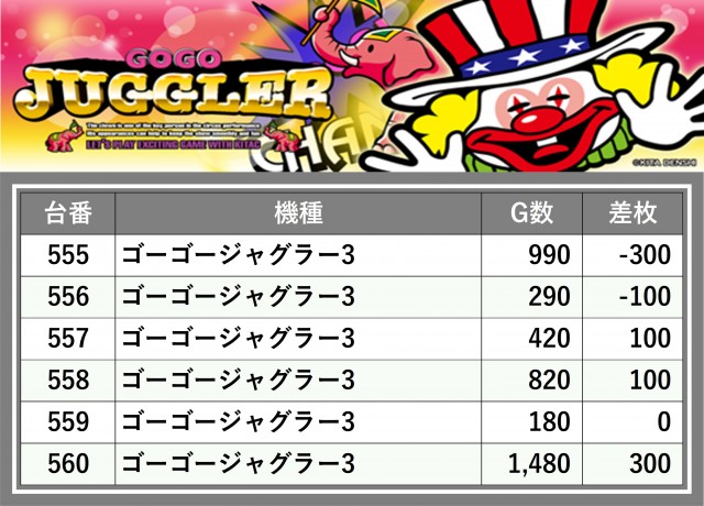 厳選された取材対象機種をはじめ、その他スロット全体から好記録が飛び出した!プレイヤーが楽しんだ1日を下記データにて振り返ってみて欲しい。